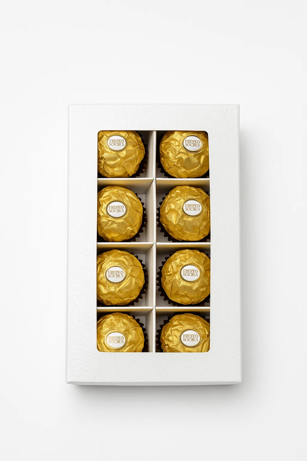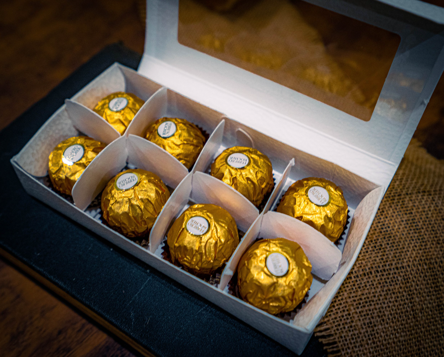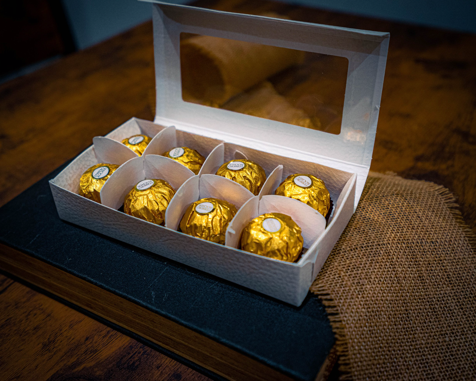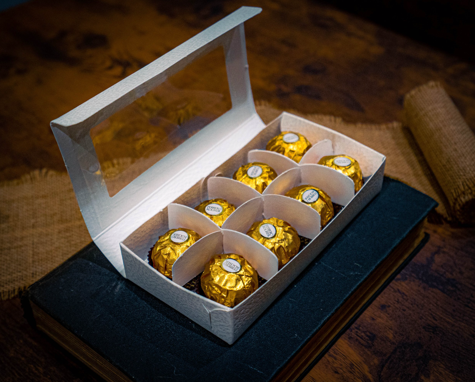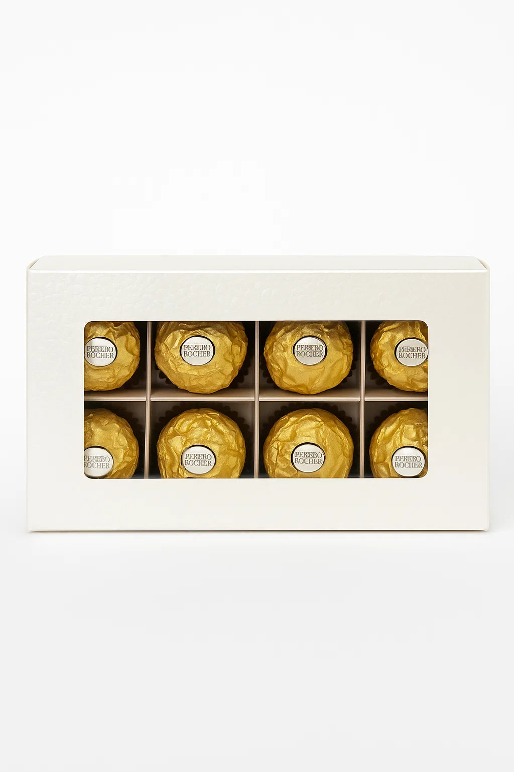Elevate your presentation with our Luxury Pelle Box in antique white, designed with an 8-space divider to perfectly showcase your truffles, small chocolates, and treats. The refined Pelle finish adds a touch of class, making it ideal for gifting or professional displays.